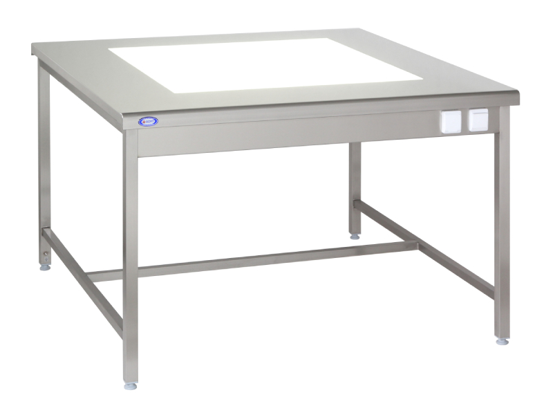 Stół wyposażony w iluminowany panel kontrolny przeszklony, umieszczony centralnie.